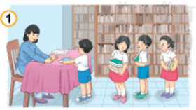Các bạn đã tuân thủ quy định xếp hàng khi trả sách ở thư viện.