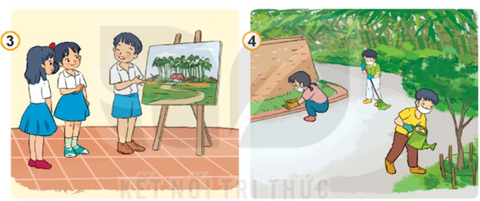 Vẽ tranh về quê hương của mình            Tưới cây, dọn vệ sinh