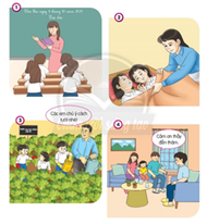 Thầy giáo, cô giáo trong tranh đang làm gì? Việc làm đó thể hiện điều gì?