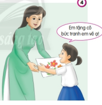 Bạn nhỏ vẽ tranh tặng cô.