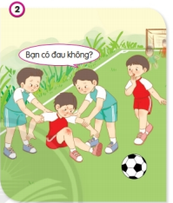 Khi đang chơi đá bóng, một bạn nam bị ngã. Các bạn khác đỡ bạn ấy dậy và hỏi thăm => Quan tâm bạn.