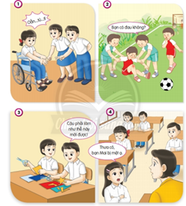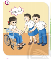 Các bạn đang chơi oẳn tù tì rất vui vẻ với một người bạn ngồi xe lăn =>Hòa đồng với các bạn.
