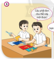 Bạn nam chỉ cho bạn nữ cách làm thủ công khi thấy bạn nữ làm chưa đúng =>Giúp đỡ bạn