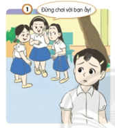 Bạn nữ rất buồn khi bị một nhóm bạn nữ khác tẩy chay không chơi cùng.