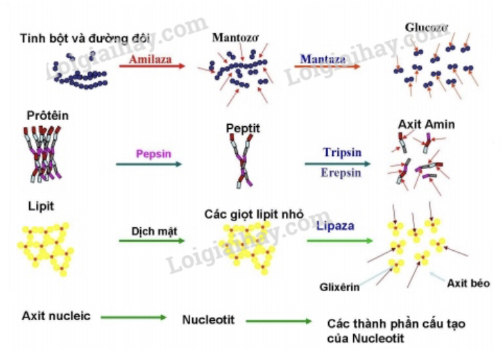 • Tiêu hóa ở ruột non: dịch tụy, dịch mật và dịch ruột giúp biến đổi chất dinh dưỡng trong thức ăn thành những chất đơn giản mà cơ thể có thể hấp thụ được.