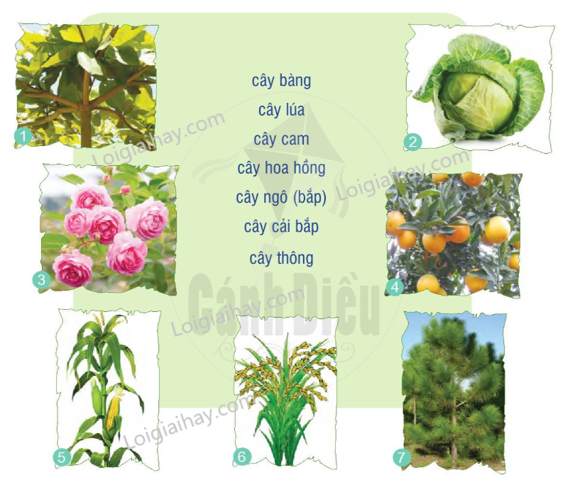 Những cây em biết là: cây lúa, cây hoa hồng, cây cải bắp,…