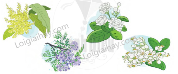 Những cây nở hoa trong vườn là: cây muỗm, cây hoa nhài, cây bưởi, cây xoan.