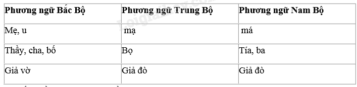 b. Giống về nghĩa nhưng khác về âm với những từ ngữ trong các phương ngữ khác hoặc ngôn ngữ toàn dân: