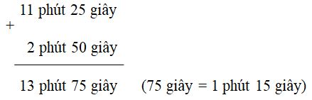 Tính: \(11\) phút \(25\) giây \( + \;\)\(2\) phút \(50\) giây \( = …\)