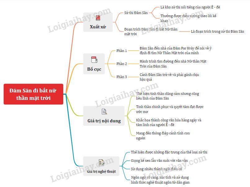 Sơ đồ tư duy – Đăm Săn đi bắt Nữ Thần Mặt Trời