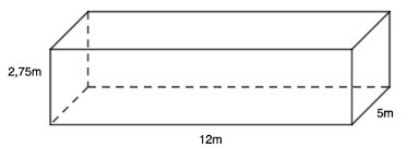Ví dụ 3. Một bể bơi có chiều dài 12m, chiều rộng 5m và sâu 2,75m. Hỏi người thợ phải dùng bao nhiêu viên gạch men để lát đáy và xung quanh thành bể đó? Biết rằng mỗi viên gạch có chiều dài 25cm, chiều rộng 20 cm và diện tích mạch vữa lát không đáng kể.
