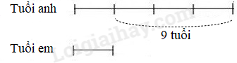 Vì hiệu số tuổi của hai anh em không thay đổi theo thời gian nên ta có sơ đồ biểu thị tuổi anh và tuổi em khi tuổi anh gấp 4 lần tuổi em:
