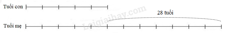 Ví dụ 3: Mẹ sinh con năm mẹ 28 tuổi. Tổng số tuổi của hai mẹ con năm nay bằng 38 tuổi. Hỏi sau mấy năm nữa thì tuổi con bằng $\frac{5}{{12}}$ tuổi mẹ?