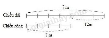 Ví dụ 1: Một hình chữ nhật có chiều dài hơn chiều rộng 12m . Tìm chiều dài, chiều rộng của hình đó, biết chiều dài bằng $\frac{7}{4}$ chiều rộng.