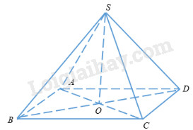 \(V = \dfrac{1}{3}SO.{S_{ABCD}} = \dfrac{1}{3}.\dfrac{{a\sqrt 6 }}{2}.{a^2}\)\(\, = \dfrac{{{a^3}\sqrt 6 }}{6}\)