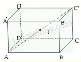 Ta có tâm của mặt cầu ngoại tiếp hình hộp chữ nhật trùng với tâm đối xứng của hình hộp. Như hình lập phương ABCD.A’B’C’D’ có tâm là I, là trung điểm của AC’, bán kính \(r = \dfrac{{AC’}}{2}\)