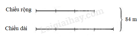 Câu 4. Một mảnh đất hình chữ nhật có chiều rộng bằng $\frac{3}{4}$ chiều dài và chu vi mảnh đất là 168 m.