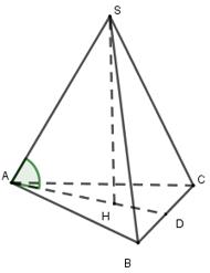 Câu 6: Hình chóp tam giác đều S.ABC có cạnh đáy là a và cạnh bên tạo với đáy một góc \({45^0}\). Tính theo \(a\) thể tích khối chóp S.ABC.