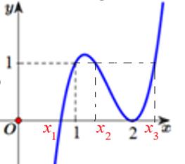 +) \(f\left( x \right) = 1\) có 3 nghiệm phân biệt \(x = 1\)  (nghiệm đơn), \(x = {x_2}{\mkern 1mu} {\mkern 1mu} \left( {1 < {x_2} < 2} \right)\) (nghiệm đơn) và \(x = {x_3}{\mkern 1mu} {\mkern 1mu} \left( {{x_3} > 2} \right)\) (nghiệm đơn).