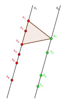 Mặt phẳng \(\left( P \right)\) chứa hai đường thẳng \({d_1},{\mkern 1mu} {\mkern 1mu} {d_2}\)
