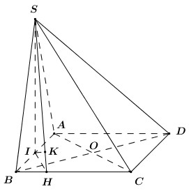 Câu 5 Cho hình chóp S.ABCD có đáy là hình thoi, tam giác SAB đều và nằm trong mặt phẳng vuông góc với mặt phẳng \(\left( {ABCD} \right)\). Biết \(AC = 2a,{\mkern 1mu} {\mkern 1mu} BD = 4a\). Tính theo \(a\) khoảng cách giữa hai đường thẳng AD và SC.