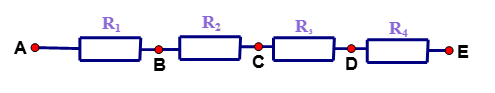 + Vì \({R_1},{R_2},{R_3},{R_4}\) mắc nối tiếp , mà \({R_1} = 2{R_2} = 3{R_3} = 4{R_4}\)  cho nên \({U_1} = 2{U_2} = 3{U_3} = 4{U_4}\)