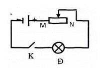 Ta có, để đèn sáng mạnh nhất thì phải dịch chuyển con chạy của biến trở tới vị trí M