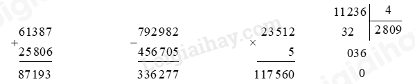 – Với phép cộng, phép trừ, phép nhân: Tính lần lượt từ phải sang trái