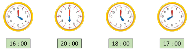 Câu 8. Nối hai đồng hồ chỉ cùng thời gian vào buổi chiều hoặc buổi tối: