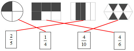 Bài 1. (1 điểm) Nối phân số chỉ số phần tô màu với hình ở trên: