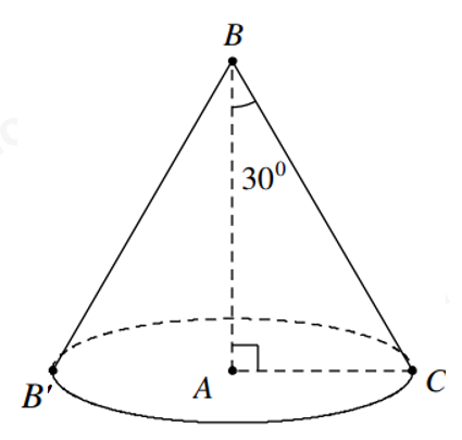 Vì góc ở đỉnh bằng \({60^0}\) nên \(\widehat {CBA}\, = \,\,\frac{1}{2}\,\widehat {CBB’}\,\, = \,\,{30^0}\)
