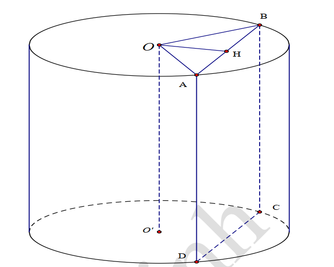 Vì mặt phẳng \((P)\) song song với trục và cách trục một khoảng \(\frac{a}{2} \Rightarrow OH = \,\frac{a}{2}\)