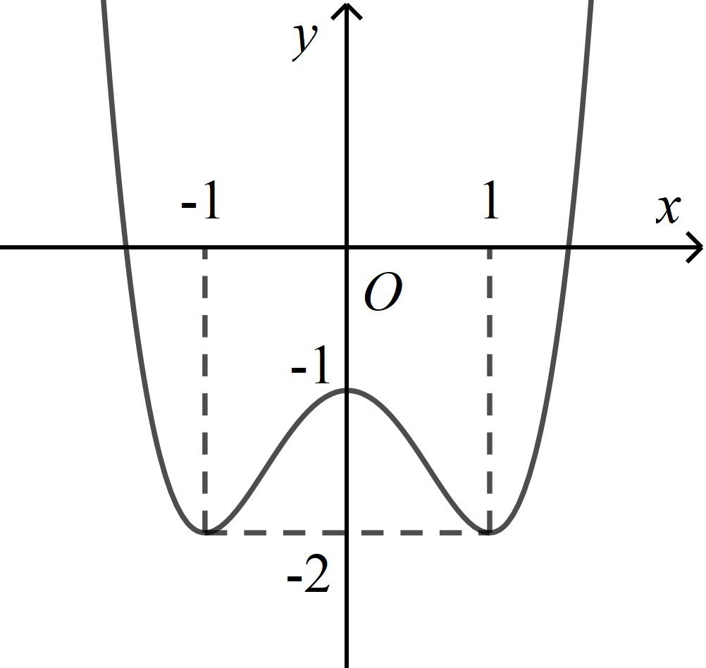 A. \(y = – {x^4} + \,3{x^2} – 1\) B. \(y = {x^3} – \,3{x^2} – 1\) C. \(y = – {x^3} + \,3{x^2} – 1\) D. \(y = {x^4} – \,3{x^2} – 1\).