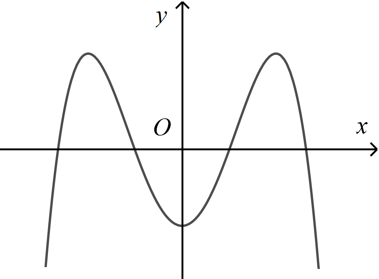 Câu 4. Cho hàm số \(y = \,\,f(x) = \,ax{}^4\,\, + \,b{x^2}\,\, + \,c\,\)có đồ thị như hình vẽ
