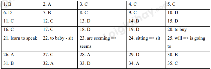 Choose the best answer A, B, C or D to complete the sentences.