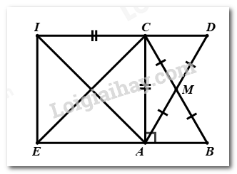 b) Trên tia đối của tia \(CD\), lấy điểm \(I\) sao cho \(CI = CA\), qua điểm \(I\) vẽ đường thẳng song song với \(AC\) cắt \(AB\) tại \(E\). Chứng minh \(\Delta ACE = \Delta ICE\), từ đó suy ra \(\Delta ACE\) là tam giác vuông cân.