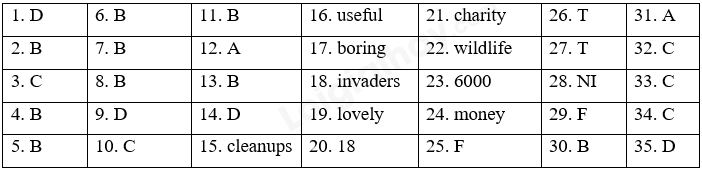 I. Choose the word whose underlined part is pronounced differently. II. Choose the word that has a different stressed syllable from the rest. III. Choose the best option (A, B, C or D) to complete each of the following sentences. IV. Write the correct forms of the words in the brackets. V. Listen to a man talking about the Global Penguin Society and complete the following sentences. Write ONE WORD OR A NUMBER for each blank. VI. Read the following passage. Decide whether the statements are True