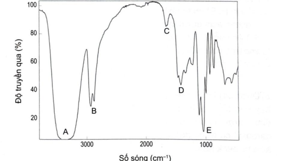 Để xác định được peak của nhóm (alcohol) OH trên phổ IR, ta xác định số sóng của nhóm chức OH rồi tìm số sóng có giá trị nằm trong khoảng đó trên phổ IR của X.