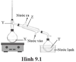 Một học sinh tiến hành chưng cất để tách CHCl3 (ts = 61 °C) ra khỏi CHCl2CHCl2 (ts = 146 °C) bằng bộ dụng cụ như ở Hình 9.1.Khi bắt đầu thu nhận CHCl3 vào bình hứng thì nhiệt độ tại vị trí nào trong hình đang là 61 °C?