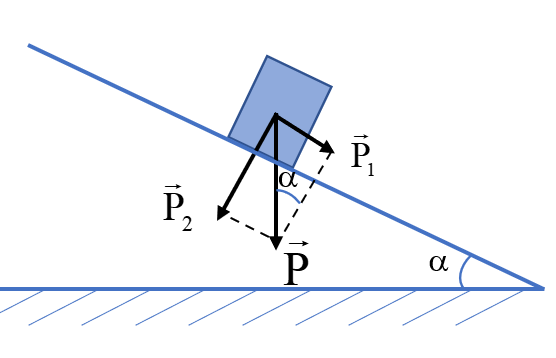 \(\left\{ \begin{array}{l}{P_1} = P.\sin \alpha  = 40.\sin 60^\circ  = 34,6N\\{P_2} = P.\cos \alpha  = 40.\cos 60^\circ  = 20N\end{array} \right.\)