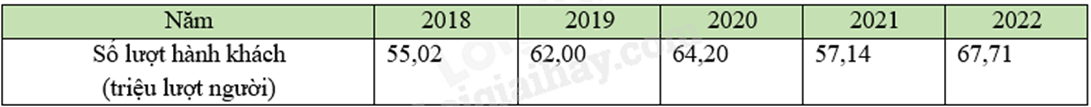 b) Hãy hoàn thiện biểu đồ ở hình bên để nhận được biểu đồ cột biểu diễn các dữ liệu thống kê số lượt hành khách vận chuyển bằng đường bộ ở Hải Phòng trong các năm trên.