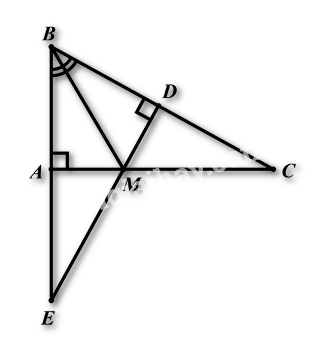 Cho tam giác \(ABC\) vuông tại \(A.\) Tia phân giác góc \(B\) cắt cạnh \(AC\) tại điểm \(M\). Vẽ \(MD\) vuông góc với \(BC\) (với \(D\) thuộc cạnh \(BC\)).