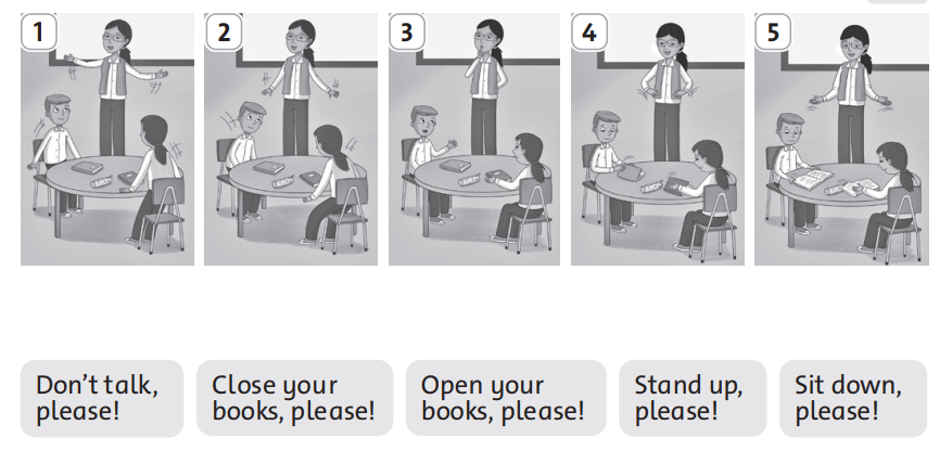 5. Open your book, please! (Làm ơn hãy mở sách ra!)