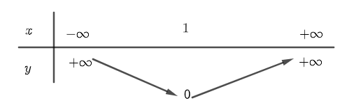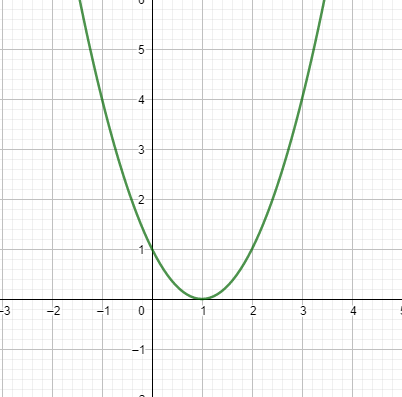 Đồ thị hàm số là 1 parabol có bề lõm quay lên, có đỉnh S (1,0), trục đối xứng x = 1, cắt trục tung tại S, có giá trị nhỏ nhât bằng 0