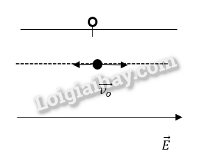 + Vì q=e<0 nên \(\overrightarrow F  \uparrow  \downarrow \overrightarrow E \) mà \(\overrightarrow {{v_0}} \) cùng hướng với \(\overrightarrow E \) nên \(\overrightarrow F \) ngược chiều dương