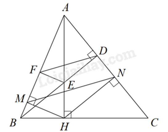 c) Vẽ đường cao BD cắt AH tại E. Qua D vẽ đường thẳng song song với MN cắt AB tại F. Chứng minh \(\widehat {AEF} = \widehat {ABC}\).