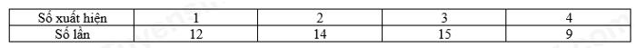 Câu 3: Gieo một con xúc xắc \(4\) mặt \(50\) lần và quan sát số ghi trên đỉnh của con xúc xắc, ta được kết quả như sau: