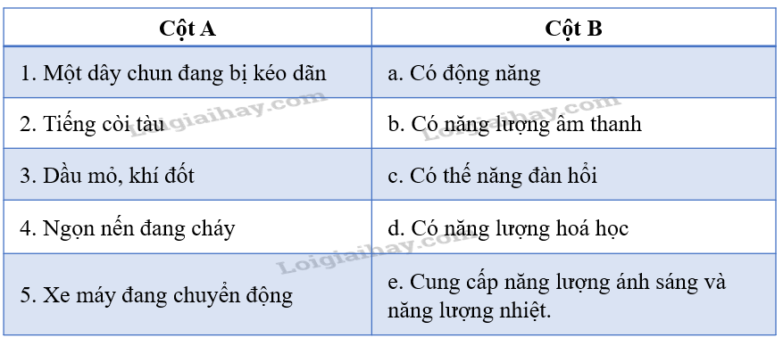 Câu 5: Khi quạt điện hoạt động thì có sự chuyển hóa: