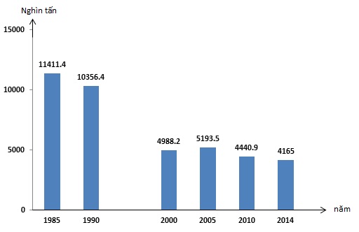 – Sản lượng cá khai thác giai đoạn 1985 – 2014 giảm nhanh (giảm 27,4 lần) nhưng không liên tục, năm 2005 có tăng nhẹ từ 4988,2 lên 593,5 nghìn tấn.