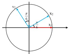 => \({x_2}\) và \({x_1}\) lệch pha nhau một góc \(\dfrac{{2\pi }}{3} – \dfrac{\pi }{2} = \dfrac{\pi }{6}\)
